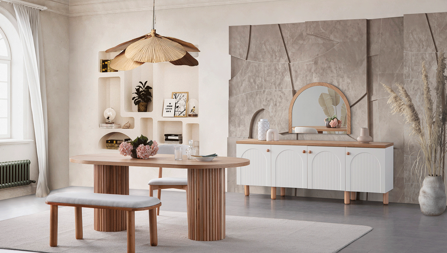 | Takım İçeriği | Nervür Konsol, Nervür Konsol Ayna, Nervür Masa, Nervür Sandalye ve Nervür Bench |